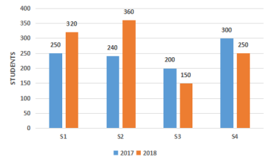 The given bar graph represents the number of students admitted in four schools (S1, S2, S3, S4) during two consecutive years 2017 and 2018. What percentage is the average admission of schools S3 and S4 in 2018 of the average admission of schools S1 and S2 in 2017? |