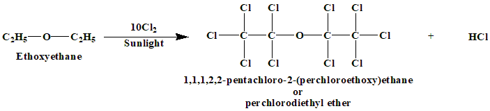 Since the compound \(X\) is Dimethyl ether, which when reacts with \(Cl_2\) in the presence of sunlight we get: