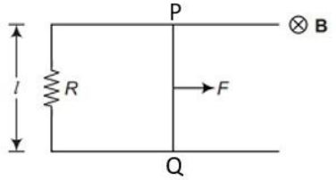 In the given figure a rod PQ of length 2.5 m can slide without friction. The value of R is 5.0 Ω and a magnetic field of 2 T is directed perpendicularly into the paper. The force F required to move the rod to the right at a constant speed of 1.0 m/s will be |