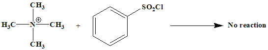 Tertiary amines do not contain any replaceable 'H' on amino group It is a very bulky due to many \(-CH_3\) group Lone pair of electrons on nitrogen does not allow this reaction \(SO_2\) is eliminated and stops the reaction |