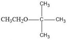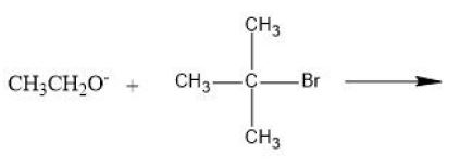 Tertiary alkyl halides react with strong bases like ethoxide ion via elimination (E2) rather than substitution due to steric hindrance. Detailed Explanation Option 1: $CH_3CH_2O-C(CH_3)_3$ Ether formation would require SN2 substitution. However, tert-butyl bromide is highly hindered, making SN2 substitution difficult. Option 2: $H_2C=CH_2$ Formation of ethene would require elimination from ethyl group, which is not present as substrate. Option 3: $(CH_3)_2C=CH_2$ Ethoxide ion acts as a strong base and removes a ẞ-hydrogen from tert-butyl bromide leading to elimination via E2 mechanism. Product formed is isobutene (2-methylpropene). Option 4: $CH_3CH_2Br$ This would require substitution at ethoxide ion, which does not occur. |