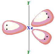 The 3 lone pairs occupy the equatorial positions in a trigonal bipyramidal arrangement to minimize repulsion. The 2 fluorine atoms occupy the axial positions, 180° apart. This gives \( \text{XeF}_2 \) a linear shape. The hybridization of xenon is \( sp^3d \) because 5 regions of electron density correspond to this hybridization. Thus, the correct description of \( \text{XeF}_2 \) is linear with \( sp^3d \) hybridization. The correct option is: 1. linear; \( sp^3d \). |