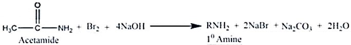 The correct answer is Option (2) → Benzamide Hofmann bromamide degradation (Hofmann rearrangement) converts a primary amide ($R\text{--}CONH_2$) into a primary amine ($R\text{--}NH_2$) with one carbon less using $Br_2$ and $KOH/NaOH$. The reaction specifically requires the $\text{--}CONH_2$ group. Explanation of Options: 1. Aniline Aniline is an aromatic amine ($C_6H_5NH_2$), not an amide. It does not contain the carbonyl ($C=O$) group attached to $\text{--}NH_2$. Since Hofmann degradation acts on amides, aniline will not undergo this reaction. 2. Benzamide Benzamide ($C_6H_5CONH_2$) is a primary amide, the exact functional group required. On treatment with $Br_2/\text{alkali}$, it forms aniline ($C_6H_5NH_2$) with loss of one carbon as $CO_2$. Hence, benzamide undergoes Hofmann bromamide degradation. 3. Nitrobenzene Nitrobenzene contains a $-NO_2$ group, not an amide. The nitro group does not participate in Hofmann rearrangement. Thus, it cannot undergo this reaction. 4. Benzylamine Benzylamine ($C_6H_5CH_2NH_2$) is already a primary amine, not an amide. Hofmann degradation reduces carbon count of amides, not amines. Therefore, benzylamine does not undergo this reaction. |