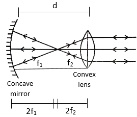 A concave mirror of focal length 6 cm is placed at a distance 'd' from the convex lens of focal length 8 cm. A beam of light coming from infinity and falling on this convex lens-concave mirror combination returns to infinity. The distance 'd' must be equal to: |