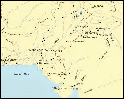 Rakhigarhi is located in the northern region of the Harappan civilization, making it the northernmost site. Kalibangan is situated south of Rakhigarhi. Balakot is further south, so it follows Kalibangan. Dholavira is a prominent Harappan site in Gujarat, which is further south compared to the previous sites. Nageshwar is located in the southernmost region, near the Arabian Sea, so it is placed last in the list. |