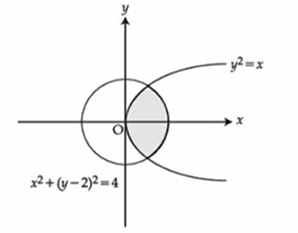 The region bounded by the curve $x^2+(y-2)^2=4, y^2 =x$ and x-axis is correctly represented as :