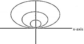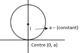 faculty of circles touching x-axis at origin equation of this circle will be $-x^2+(y-a)^2=a^2$ $x^2+y^2+a^2-2ay=a^2$ $\Rightarrow x^2+y^2-2 a y=0$ .......(1) differentiating w.r.t x $\frac{d}{d x}\left(x^2+y^2-2 a y\right)=\frac{d}{d x}(0)$ $2 x+2 y \frac{d y}{d x}-2 a \frac{d y}{d x}=0$ ....(2) from (1) $x^2+y^2=2 a y$ $\Rightarrow \frac{x^2}{y}+\frac{y^2}{y}=2 a$ $\Rightarrow \frac{x^2}{y}+y=2a$ substituting value of 2a in eq (2) ⇒ $2 x+2 y \frac{d y}{d x}-\left(\frac{x^2}{y}+y\right) \frac{d y}{d x}=0$ $2 x+\frac{d y}{d x}\left(2 y-y-\frac{x^2}{y}\right)=0$ $2 x+\frac{d y}{d x}\left[y-\frac{x^2}{y}\right]=0$ $2 x y+\frac{d y}{d x}\left(y^2-x^2\right)=0$ (Multiplying both sides with y) $\left(x^2-y^2\right) d y-2 x y d x=0$ (Multiplying both sides with (-dx)) |
