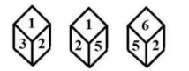 Three different positions of the same dice are shown. Select the number that will be on the face opposite to the face showing the number '1'. |
