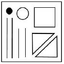 Option 4 contains all the required elements (nested square frame, line groups, and both circles) arranged so they can be combined to recreate the given figure.