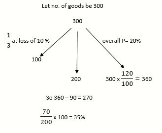 If goods are purchased for Rs. 900 and one-third is sold at a loss of 10%. At what gain % should the remaining be sold to gain 20% on the whole transaction?