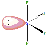 B. \(SF_4\) : I. See-saw shaped Sulfur (S) has 6 valence electrons. Fluorine (F) has 7 valence electrons, and there are 4 fluorine atoms. Sulfur forms four single bonds with fluorine atoms, using 4 of its 6 valence electrons. The remaining 2 valence electrons on sulfur form a lone pair. There are 5 electron pairs (4 bonding pairs + 1 lone pair) around the sulfur atom. In a trigonal bipyramidal arrangement, the lone pair occupies an equatorial position because it experiences less repulsion from other pairs in this position. The molecular shape becomes a see-saw due to the presence of the lone pair, which distorts the ideal trigonal bipyramidal geometry.