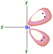 Bromine (Br) has 7 valence electrons. Fluorine (F) has 7 valence electrons, and there are 3 fluorine atoms. Bromine forms three single bonds with fluorine atoms, using 3 of its 7 valence electrons. The remaining 4 valence electrons on bromine form 2 lone pairs. There are 5 electron pairs (3 bonding pairs + 2 lone pairs) around the bromine atom. In a trigonal bipyramidal arrangement, the lone pairs prefer to occupy equatorial positions because they experience less repulsion there. With the lone pairs in the equatorial positions and the fluorine atoms occupying the axial and remaining equatorial positions, the molecular shape becomes bent T-shaped.