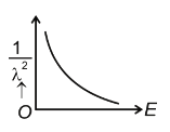 The correct answer is option (4) : de-Broglie wavelength $\lambda =\frac{h}{mv}=\frac{h}{\sqrt{2mE}}$ where $E=\frac{1}{2}mv^2$ Squaring both sides, $\lambda^2 =\frac{h^2}{4m^2E}$ $⇒\frac{1}{\lambda^2}= (constant)E$ Graph passes through origin with constant slope. |