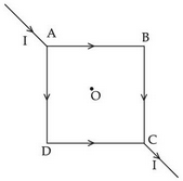 The given figure shows a square loop made from a uniform wire. If a battery is connected between the point A and C, the magnetic field at the centre O of the square would be: |