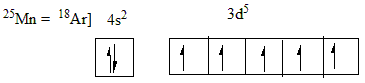The compound with atomic number 25 is Manganese, its electronic configuration is: