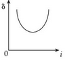 The graph between angle of deviation 'δ' and angle of incidence (i) for triangular prism is represented by: |
