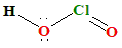 The conjugate base is \(ClO^-\). The single oxygen atom provides limited stabilization of the negative charge. Therefore, \(HClO\) is the least acidic among the oxo acids of chlorine. Chlorous Acid (\(HClO_2\)):