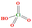 The conjugate base is \(ClO_3^-\). With three oxygen atoms, this acid is more acidic than both \(HClO\) and \(HClO_2\), due to even greater stabilization of the negative charge. Perchloric Acid (\(HClO_4\)):