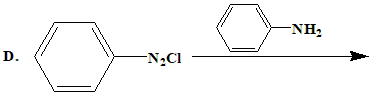 D. When benzene diazonium chloride (\(\text{C}_6\text{H}_5\text{N}_2^+\text{Cl}^-\)) reacts with aniline (\(\text{C}_6\text{H}_5\text{NH}_2\)), it undergoes a reaction known as the diazo coupling reaction. This reaction results in the formation of a azo compound, specifically phenylazoaniline (also known as aniline yellow). The reaction is: