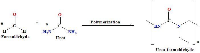 (B) Urea-formaldehyde(IV) Urea-formaldehyde Urea-formaldehyde is a type of thermosetting polymer known for its strong bonding properties and is used in adhesives, finishes, and molded objects. Components: The resin is synthesized from urea and formaldehyde. The reaction between these two substances produces a polymer that cross-links to form a rigid and durable material.