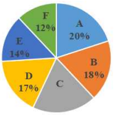 The following pie chart represents the percentage-wise distribution of 300 students of class X in a school in six different sections A, B, C, D, E and F. The given table shows the number of boys of class X in six different sections A, B, C, D, E and F.