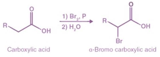 Read the passage carefully and answer the questions. Carboxylic acids are the organic compounds which comprise of carboxyl functional group, -COOH. These are generally found in nature, some higher members are known as fatty acids as they occur in natural fats as esters of glycerol. They can be prepared from oxidation of alcohols and aldehydes, hydrolysis of nitriles and amides and Grignard reagents. They are stronger acids than simple phenols and alcohols. but weaker than mineral acids. Substituents affect the acidity of aliphatic and aromatic carboxylic acids. They undergo reactions involving cleavage of -OH and C-OH bond. Carboxylic acids having an alpha hydrogen get halogenated in the presence of red phosphorus to form alpha halo carboxylic acids. The reaction is known as Hell Volhard Zelinsky reaction. Besides these aromatic carboxylic acids undergo electrophilic substitution reactions. They are versatile and are employed in the manufacture of various useful compounds. For example, methanoic acid is used in rubber, textile, dyeing, leather and electroplating industries. Higher fatty acids are used in the manufacture of soaps and detergents. Esters of Benzoic acid are used in perfumery. |