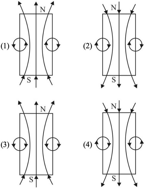 Of the following figure, the lines of magnetic induction due to a magnet SN, are given by |