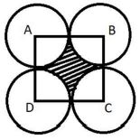 Four circles of equal radius are drawn with centers, A, B, C and D such that ABCD is a square of side 14 cm and the circles touch externally as in the figure. The area of the shaded region bounded by the 4 circles is: (Take $π =\frac{22}{7}$). |