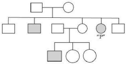 In the given pedigree chart 'P' is a female suffering from a disease, which is denoted by 'A' dominant allele and 'a' recessive allele ? Find the genotype of 'P'. |