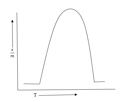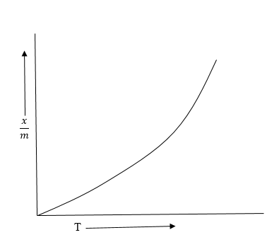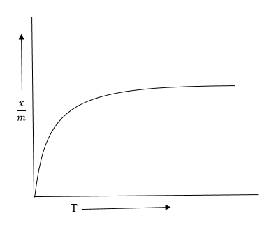 The correct answer is option 3. The variation of extent of adsorption \((\frac{x}{m})\) with pressure \((P)\) at a particular temperature was given mathematically by Freundlich in 1909. From the adsorption isotherm, the following observations can be easily made: (i) At low pressure, the graph is almost straight line which indicates that \(\frac{x}{m}\) is directly proportional to pressure. This may be expressed as: \(\frac{x}{m}\propto P\) or, \(\frac{x}{m} = kP\) -------(i) where \(k\) is a constant