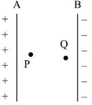Two protons P and Q are placed between two charged plates A and B as shown, then |