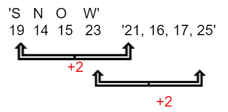 In this code language, each letter is replaced by a number that is two added to its position value in the alphabet series, such that: