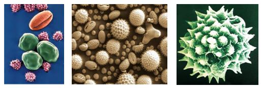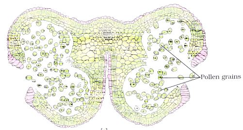 Scanning electron micrographs of a few pollen grains A mature dehisced anther Enlarged view of a pollen grain tetrad |