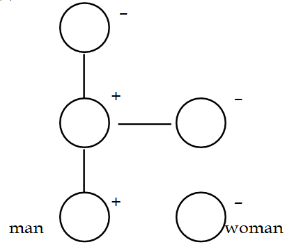 Note: ↑ or ↓ ⇒ Upward or downward line shown "generation gap" . = ⇒ Double lines shown "relation b/w Husband & Wife" — ⇒ single line shown "relation between them other than Husband & Wife". + ⇒ Plus sign shown " Male". - ⇒minus sign shown " Female". |
