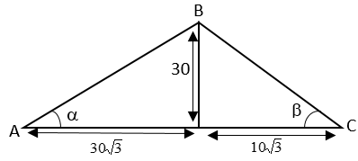 $β=\tan^{-1}(\frac{30}{10\sqrt{3}})=60°$
