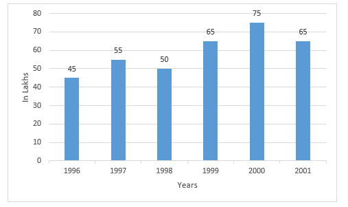 The following graph given the annual percent profit earned by a company during the period 1996-2001. Study the graph carefully and answer the question that follow. %$Profit=\frac{Income \, - \, Expenditure}{Expenditure}×100$ The profit earned by the company is maximum in the year: |