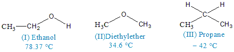 The correct answer is option 1. I > II > III. The boiling points of the three substances are as follows: