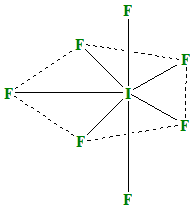 When two different halogens react with each other, interhalogen compounds are formed. They can be assigned general compositions as XX’ , XX’3, XX’5 and XX’7 where X is halogen of larger size and X’ of smaller size and X is more electropositive than X’. As the ratio between radii of X and X’ increases, the number of atoms per molecule also increases. Thus, iodine (VII) fluoride should have maximum number of atoms as the ratio of radii between I and F should be maximum. That is why its formula is IF7 (having maximum number of atoms). |