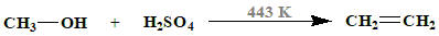The correct answer is option 3. Ethene. When ethanol \((CH_3CH_2OH)\) reacts at 443K (approximately 170°C), it undergoes a process called dehydration. This reaction removes a water molecule \((H_2O)\) from the ethanol molecule, resulting in the formation of ethene \((CH_2=CH_2)\). Here is a breakdown of the reaction: Heat as a Catalyst: The temperature of 443K provides the activation energy needed for the reaction to occur. Dehydration Process: One of the hydrogen atoms from a hydroxyl group \((OH)\) on the ethanol molecule bonds with the oxygen atom in the same group. Simultaneously, a hydrogen atom from the adjacent carbon atom bonds with the oxygen atom to form a water molecule. This water molecule is then eliminated from the molecule. Formation of Ethene: The remaining carbon chain forms a double bond between the two carbons that lost their hydrogen atoms, resulting in ethene, an alkene (hydrocarbon with a carbon-carbon double bond). Therefore, the answer is Ethene \((CH_2=CH_2)\). It is important to note that the reaction conditions can influence the products formed. In some cases, with the presence of an appropriate catalyst (like concentrated sulfuric acid), the reaction might favor the formation of diethyl ether \((CH_3CH_2OCH_2CH_3)\) through a different reaction pathway.
