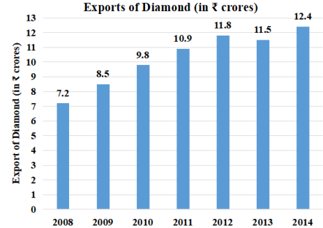 Average export = \(\frac{7.2+8.5+9.8+10.9+11.8+11.5+12.4 }{7}\) = \(\frac{ 72.1 }{7}\) = 10.3 Export in year 2008 , 2009 & 2010 is less than average export i.e. 10.3. Ans :- 3 |