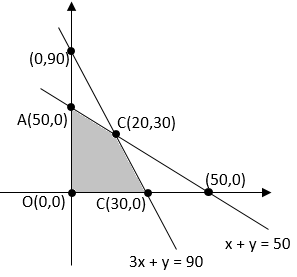 For the LPP: Maximise z = 4x + y subject to constraints x + y ≤ 50, 3x + y ≤ 90, x ≥ 0, y ≥ 0 the maximum value of z is: |