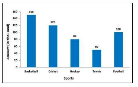 The amount spent on Hockey and Football = 80 + 100 = 180 The amount spent on Basketball and Tennis = 150 + 50 = 200 Thus, 180 of 200 = $\frac{180}{200}$ x 100 = 90% The amount spent on Hockey and Football is 90% of The amount spent on Basketball and Tennis. |