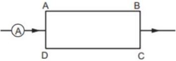 A rectangular loop ABCD made of uniform wire is a part of an electric circuit shown in the given figure. The length AD = BC= 5 mm. The sides AB and DC are long compared to the other two sides. What will be the magnetic force per unit length acting on the wire DC due to the wire AB if the ammeter reading is 8 A? |