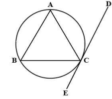 DE is a straight line. So, ∠ACD + ∠ACB + ∠BCE = 180º 65º + 35º + ∠BCE = 180º ∠BCE = 80º By using alternate segment theorem, Which states that an angle between a tangent and a chord is equal to the angle made by the chord in the alternate segment of the circle. So, ∠BCE = ∠BAC We know ∠BCE = 80º So, ∠BAC = 80º