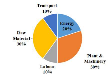 The given pie chart shows the share of labour, raw material, energy, transportation cost. and plant & machinery in the total manufacturing cost of the company during a particular year. Study the pie chart and answer the question that follows. The total central angle showing the share of energy, labour and transportation cost in the total manufacturing cost during the year was: |