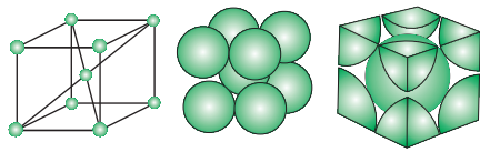 Body-Centred Cubic Unit Cell: A body-centred cubic (bcc) unit cell has an atom at each of its corners and also one atom at its body centre. Thus, in a body-centered cubic (bcc) unit cell: (i) 8 corners × \(\frac{1}{8}\) per corner atom 8 × \(\frac{1}{8}\) = 1 atom (ii) 1 body centre atom = 1 × 1 = 1 atom ∴ Total number of atoms per unit cell = 2 atoms |