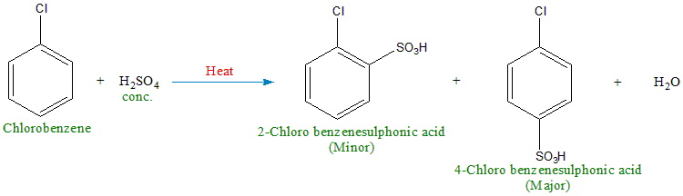 Conclusion: When chlorobenzene undergoes sulphonation, the product typically consists of a mixture of o- and p-chlorobenzene sulphonic acids. Therefore, the correct answer is: o- and p-chlorobenzene sulphonic acid |