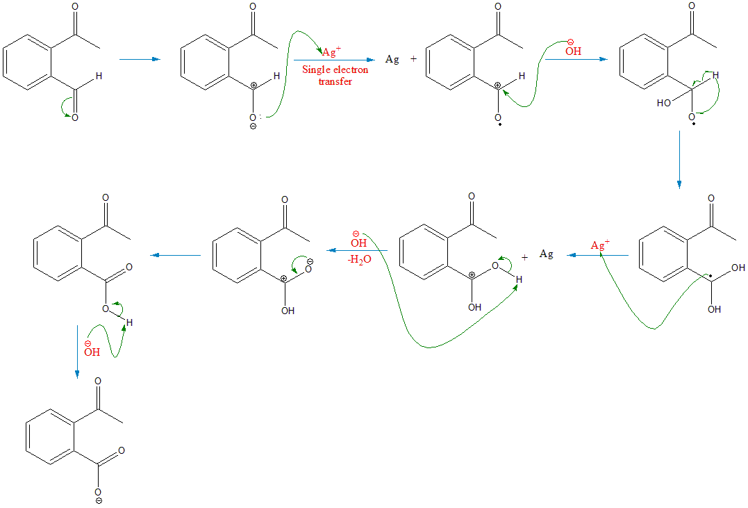 The correct answer is option 1. Tollens' reagent is selective for aldehydes and does not react with ethers. Therefore, if both an aldehyde and an ether are present in a mixture, only the aldehyde will undergo a reaction with Tollens' reagent, while the ether will remain unreacted. The reaction of Tollens' reagent with an aldehyde produces a silver mirror on the reaction vessel, indicating a positive test for the presence of an aldehyde. On the other hand, the ether will not show any observable reaction with Tollens' reagent. It is important to note that the selectivity of Tollens' reagent for aldehydes is due to the fact that aldehydes can be oxidized to carboxylate ions \((RCOO^-)\), while ethers do not have this oxidizable functional group. Therefore, only aldehydes will react with Tollens' reagent, resulting in the formation of a silver mirror. Ethers lack the necessary functional group for this reaction to occur.