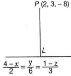 Find the foot of perpendicular from the point $(2, 3, -8)$ to the line $\frac{4 - x}{2} = \frac{y}{6} = \frac{1 - z}{3}$. Also, find the perpendicular distance from the given point to the line. |